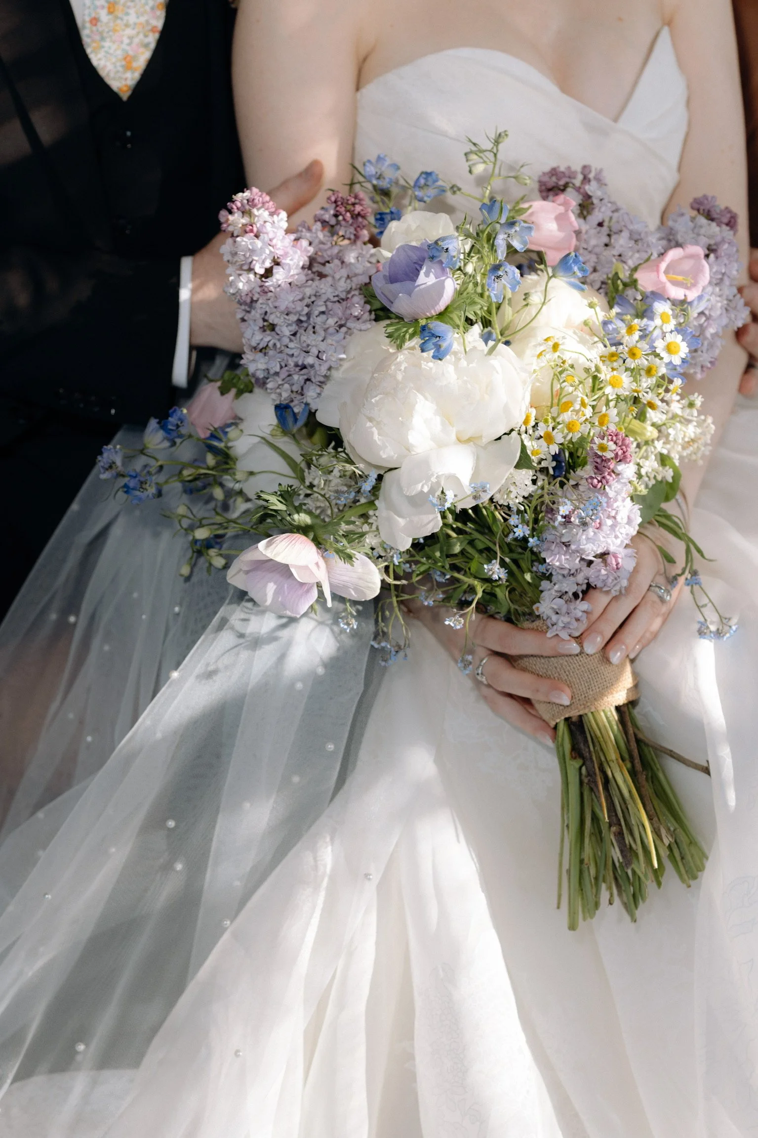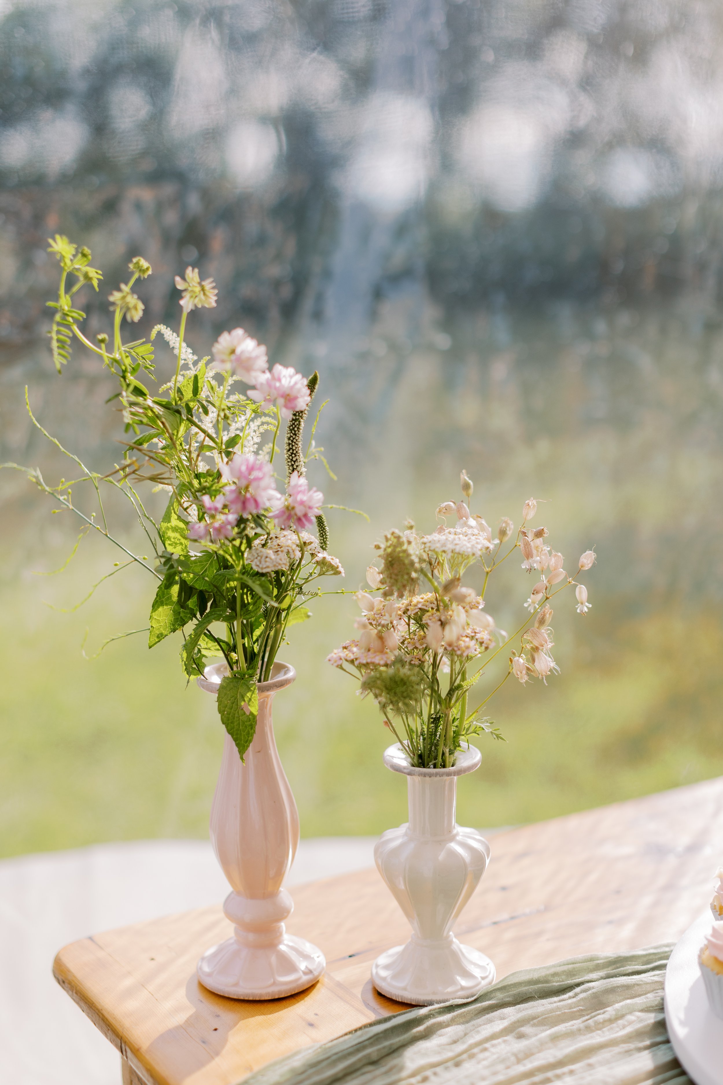 Light and airy, with plenty of wiggle room. Smaller, more delicate flowers shine here. Forget-me-nots, vervain, sneezewort, queen anne’s lace. These bouquets feel as though they were gathered by hand on a slow walk through a field.
